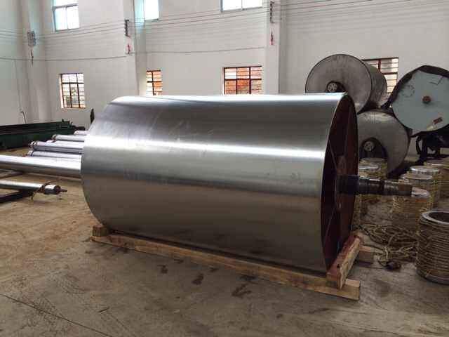 烘缸缸是用鑄鐵制成的兩端有蓋的空心圓筒,由缸體及其兩端的缸蓋組成,外徑多為1000~3000mm,在運轉過程中,內(nèi)通蒸汽將輸送的紙張烘干燙光。